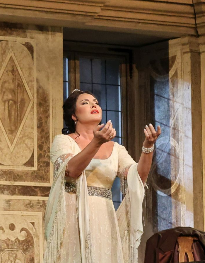 She performs under the baton of Daniele Rustioni and shares the stage with Piotr Beczała in the title role, Igor Golovatenko as Carlo Gérard, Siphokazi Molteno as La Bersi, Olesya Petrova as Madelon, Brenton Ryan as Incredibile, Guriy Gurev as Roucher, and Maurizio Muraro as Mathieu.
